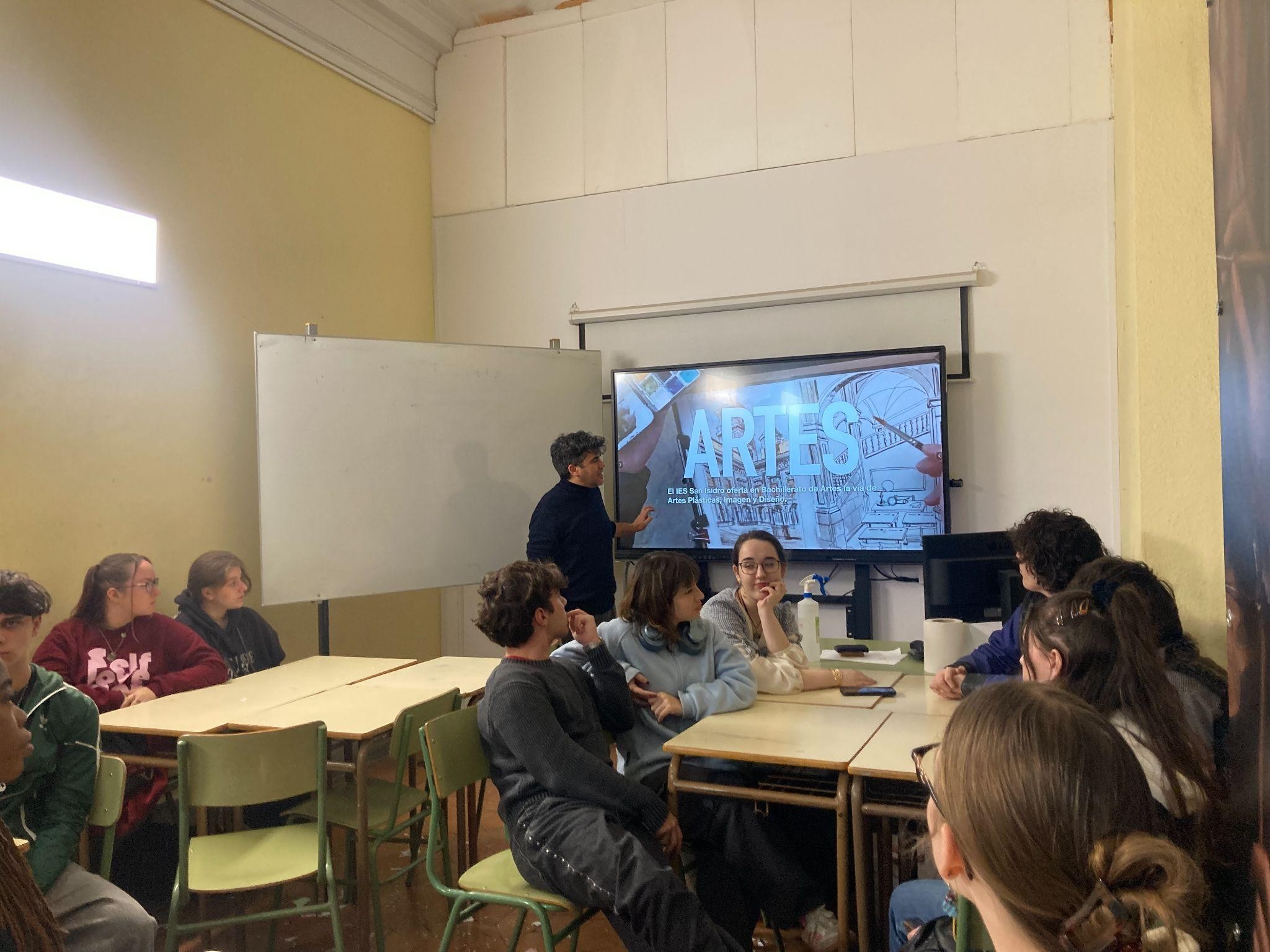 Encadrés par M. Santos (cinéma-audiovisuel), Mme Murail (arts plastiques) et Mme Ruiz-Poveda (espagnol), les élèves français et espagnols ont travaillé ensemble sur deux projets artistiques complémentaires : la réalisation d’un film inspiré de la période de la Movida madrileña, et des dessins d’après motif, réalisés lors de sorties partagées dans la ville.